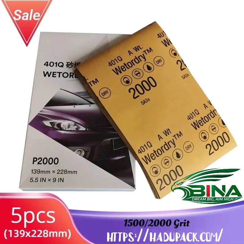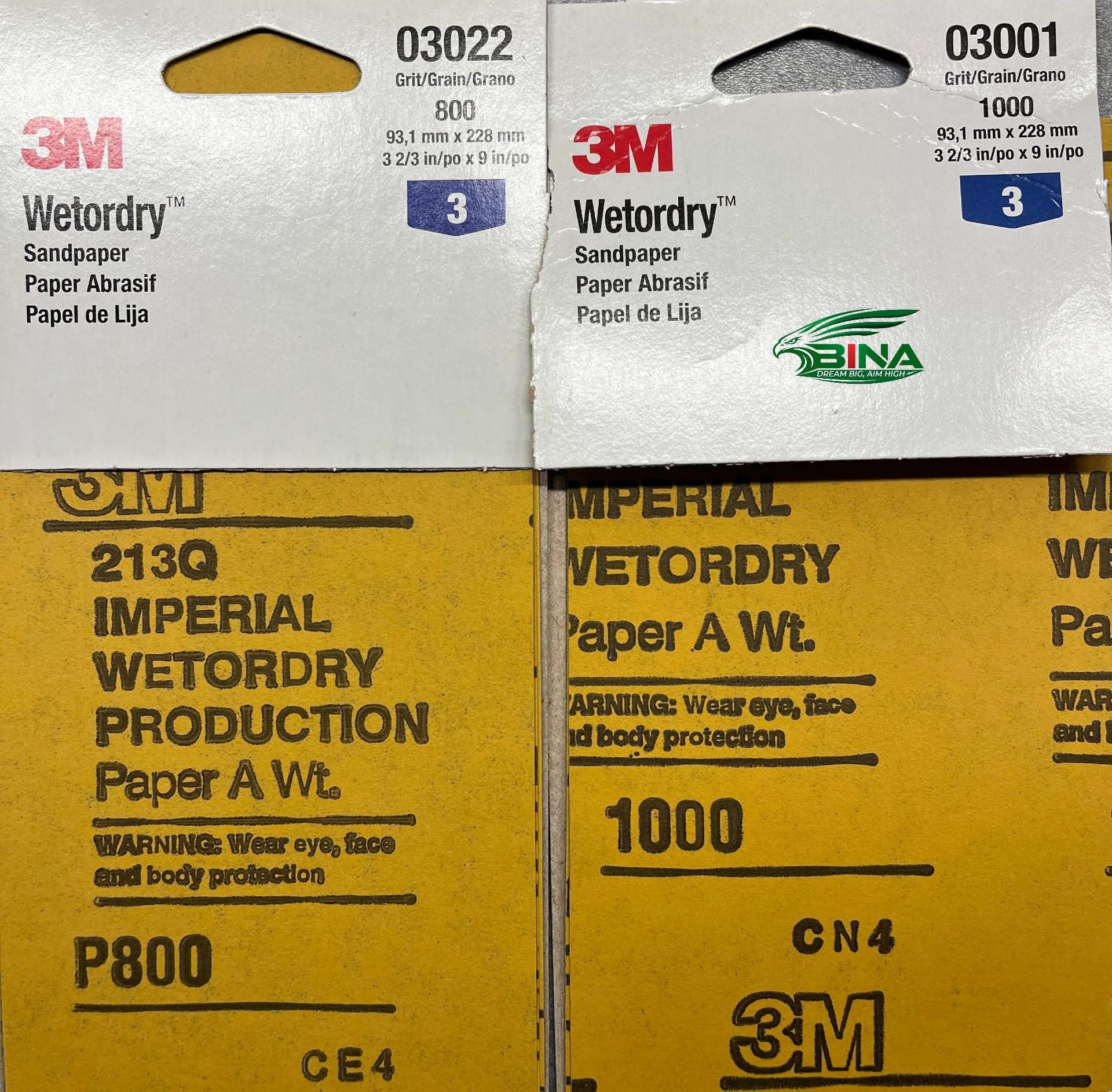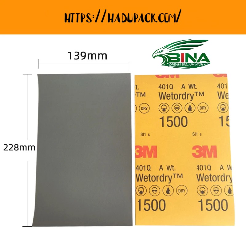 2. Giấy nhám ướt 3M (ví dụ: 401Q): Được làm bằng silicon carbide chất lượng cao và vật liệu nền mềm, chống nước, thích hợp để đánh bóng sơn và chà nhám đá; Chống mài mòn và có độ nhám đồng đều.