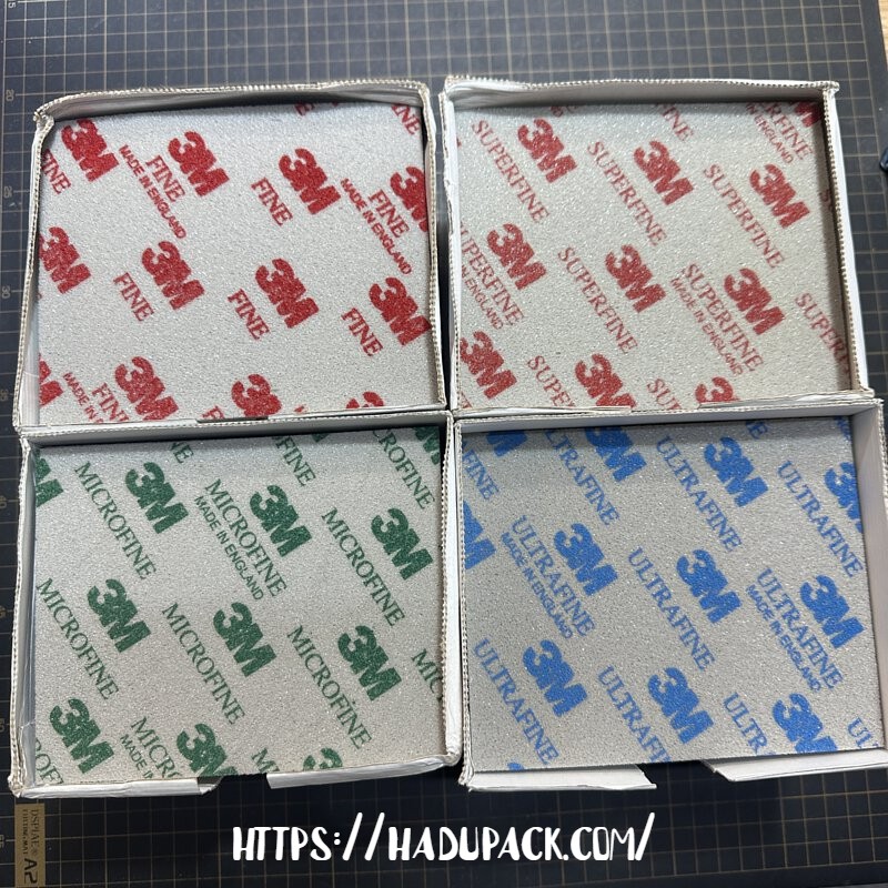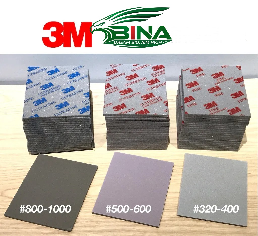 Khi sử dụng giấy nhám 3M, hãy chọn loại phù hợp với vật liệu và nhu cầu, theo nguyên tắc “từ thô đến mịn” (các độ nhám thông dụng: #150 thô → #400 trung bình → #800 trở lên mịn). Đối với chà nhám khô, nên sử dụng giấy nhám loại bỏ bụi; chà nhám ướt (như 3M 407Q) có thể giảm trầy xước và bụi. Giấy nhám xốp (đỏ/xanh dương/xanh lá cây) thích hợp cho các bề mặt cong và chi tiết mô hình; nên sử dụng chuyển động chà nhám tròn. Sau đây chúng tôi sẽ giới thiệu chi tiết: