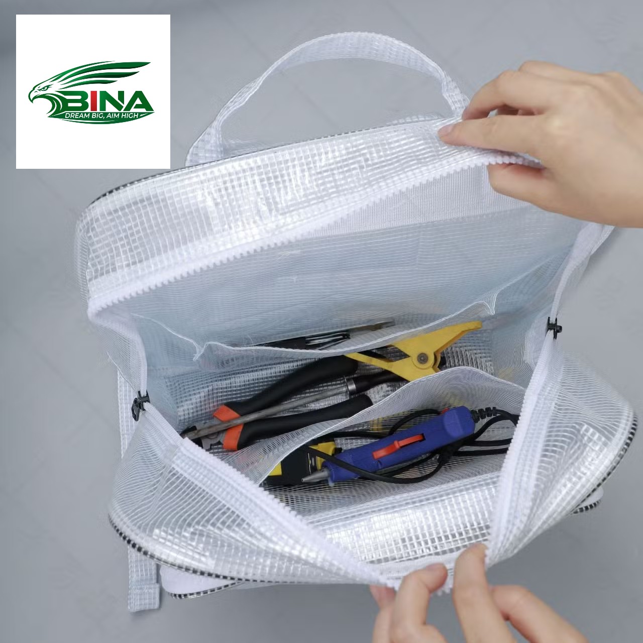 3. Thiết kế trong suốt: Chất liệu trong suốt, bền chắc cho phép dễ dàng kiểm tra trực quan các vật dụng mà không cần mở túi, điều này là cần thiết trong các khu vực làm việc an toàn hoặc sạch sẽ.