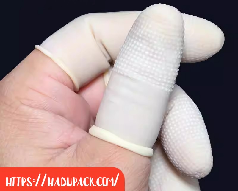 - Bao ngón tay cao su tự nhiên (mủ cao su): Độ đàn hồi tốt, thoải mái khi đeo, phù hợp cho lắp ráp điện tử nói chung.