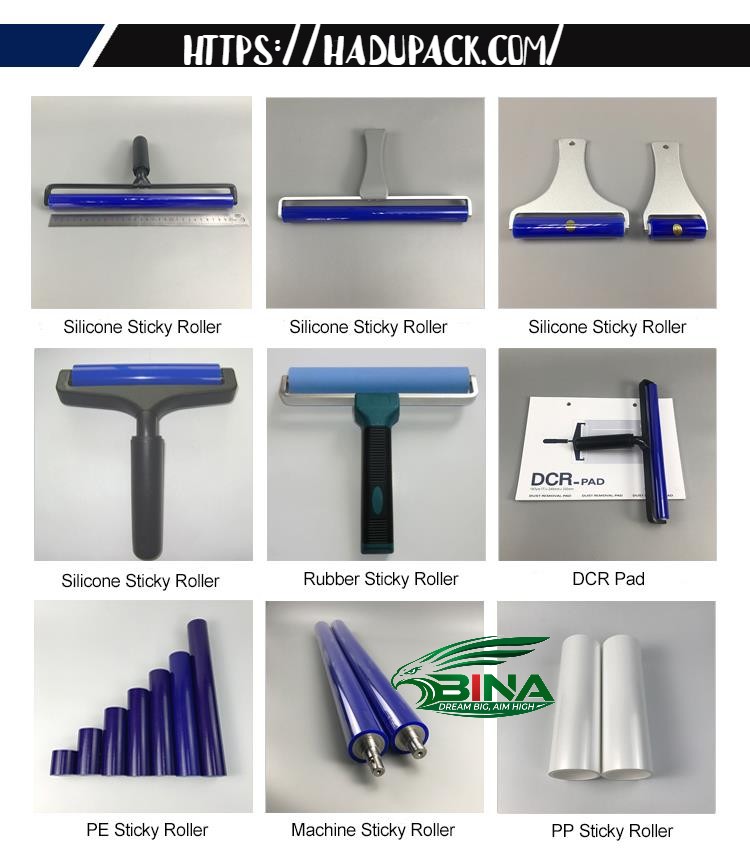 - Ưu điểm sản phẩm: Nó được thiết kế theo hình con lăn. Chất liệu cơ bản là màng polyetylen. Có các đường cắt sẵn trên màng dính. Mép của con lăn có thể bóc ra để dễ dàng bóc ra. Chất keo là chất kết dính polyacrylate, đảm bảo không bị bong tróc. Dễ dàng sử dụng với tay cầm. Nó sử dụng lõi vòng ống PE, sạch sẽ và không ô nhiễm, để giữ cho con lăn không bị biến dạng; sản phẩm này có thiết kế tiên tiến và hợp lý, không chỉ có thể loại bỏ bụi tốt mà còn tránh ô nhiễm thứ cấp do các dụng cụ truyền thống như giẻ lau, máy giặt, chổi, v.v. cho sản phẩm và xưởng thanh lọc. Hãy cẩn thận khi mua con lăn có thể rơi ra. Trong số đó, con lăn bụi giấy ít ảnh hưởng đến sản phẩm trong quá trình sử dụng và phù hợp hơn với màn hình LCD và bảng mạch linh hoạt. Được sử dụng rộng rãi trong các xưởng thanh lọc, sàn xưởng không bụi, mặt bàn, tường, trần nhà, v.v., ở những nơi có yêu cầu cao về độ sạch sẽ.