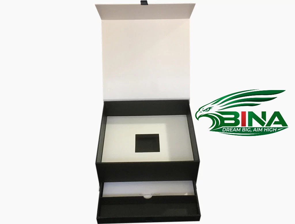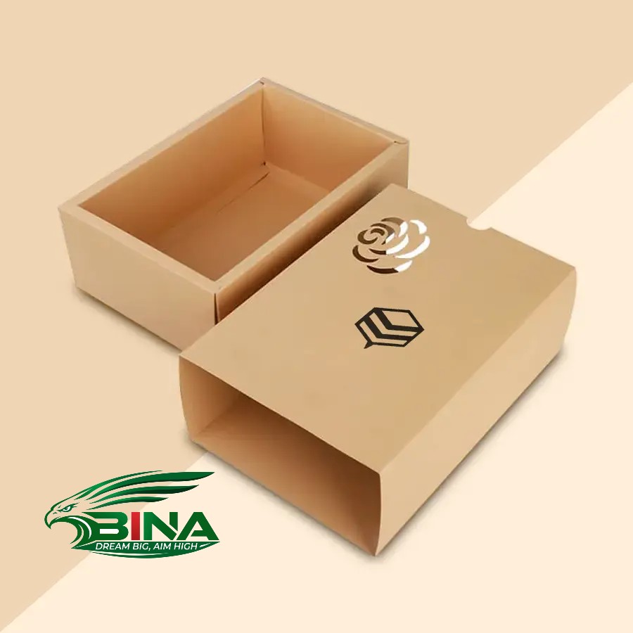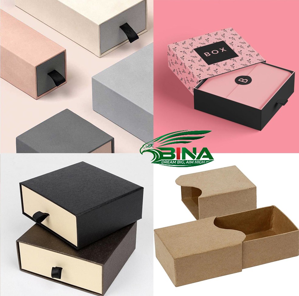 - Đóng gói quà tặng: Hộp ngăn kéo bằng giấy đen hoặc giấy kraft, thường có cửa sổ PVC trong suốt, phù hợp để đựng đồ trang sức và quà tặng dễ vỡ.