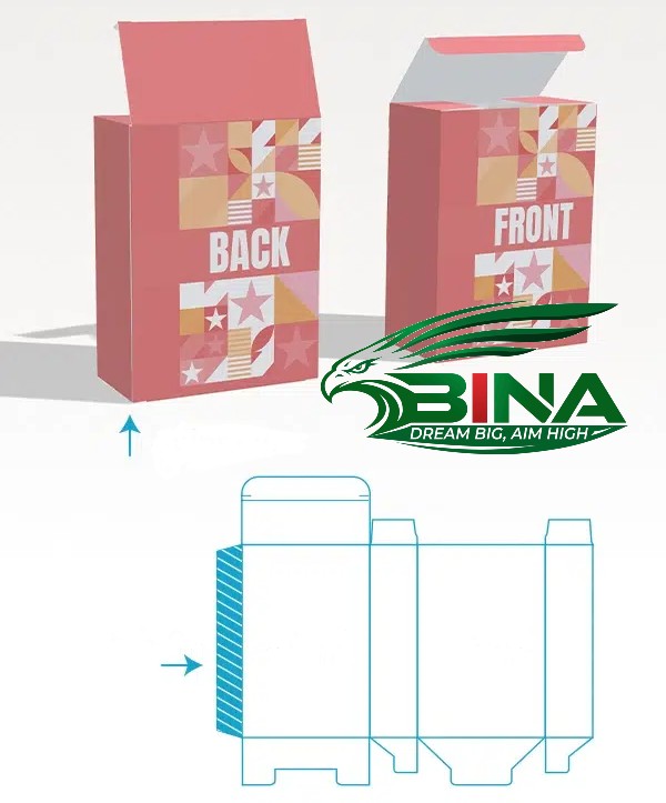 - Thiết kế cấu trúc và đường cắt khuôn: Sử dụng phần mềm thiết kế, cấu trúc hộp giấy được thiết kế, tập trung vào lưỡi chốt kéo dài từ nắp và các vị trí khớp nối với các mấu bên. Tạo khuôn cắt chính xác.