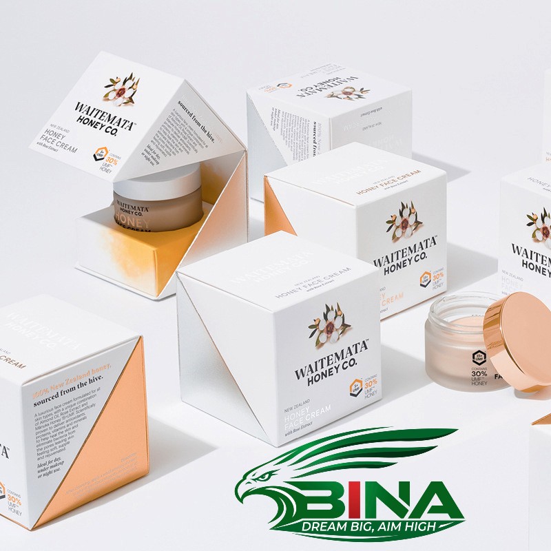 Quy trình sản xuất hộp đựng kem dưỡng da thường bao gồm thiết kế, xử lý trước khi in, lựa chọn giấy, in ấn, xử lý sau khi in, cắt khuôn và dán. Quá trình bắt đầu bằng việc in trên giấy tráng phủ hoặc bìa cứng trắng, tiếp theo là cán màng và dập nổi để tăng độ nhám. Sau đó, hình dạng hộp được cắt bằng máy cắt khuôn, và cuối cùng, các hộp được dán tự động bằng máy móc. Quy trình này không chỉ xem xét tính thẩm mỹ mà còn cả độ bền cấu trúc và khả năng bảo vệ sản phẩm. Dưới đây là các bước sản xuất chi tiết cho hộp đựng kem dưỡng da: