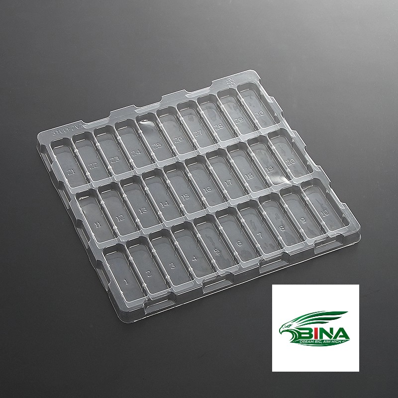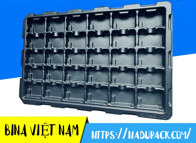 - Vật liệu: Thường được làm từ vật liệu PP (polypropylene) hoặc PS (polystyrene), được sản xuất thông qua quy trình tạo vỉ hoặc ép phun.