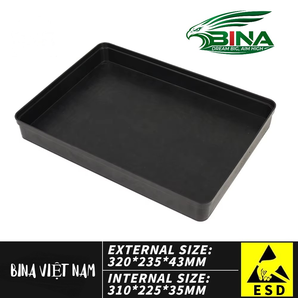 Khay nhựa chống tĩnh điện (khay ESD) là dụng cụ lưu trữ và xử lý linh kiện điện tử được làm từ nhựa PP/PS có thêm chất phụ gia dẫn điện hoặc chống tĩnh điện. Điện trở bề mặt của nó thường nằm trong khoảng 10 mũ 4 – 10 mũ 11. Nó giúp giải phóng tĩnh điện hiệu quả, ngăn ngừa hư hỏng linh kiện điện tử trong quá trình sản xuất, đóng gói và vận chuyển. Nó thường được sử dụng trong đóng gói linh kiện điện tử, xử lý bảng mạch và các quy trình SMT. Khay xử lý ESD và khay vỉ chống tĩnh điện cũng là những sản phẩm tương tự.