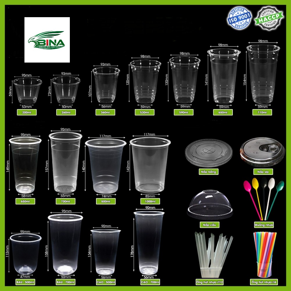 - #1 PET (PET): Độ trong suốt cao, thường được sử dụng cho cốc đồ uống lạnh.
