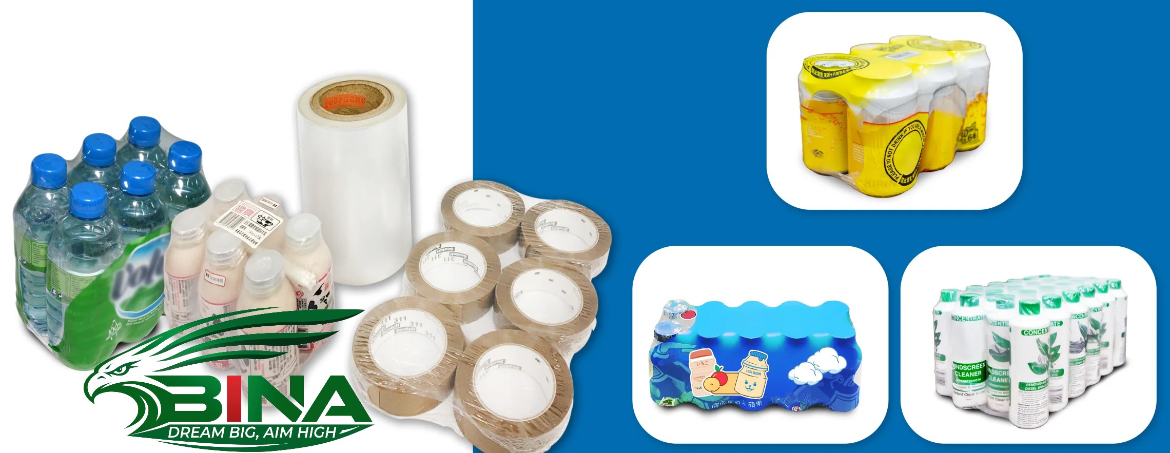 Màng co nhiệt PE chủ yếu được sử dụng để đóng gói rượu vang, lon, các sản phẩm nhựa khác nhau, đồ uống, vật liệu xây dựng, v.v., và có khả năng chống va đập và giảm chấn tốt.