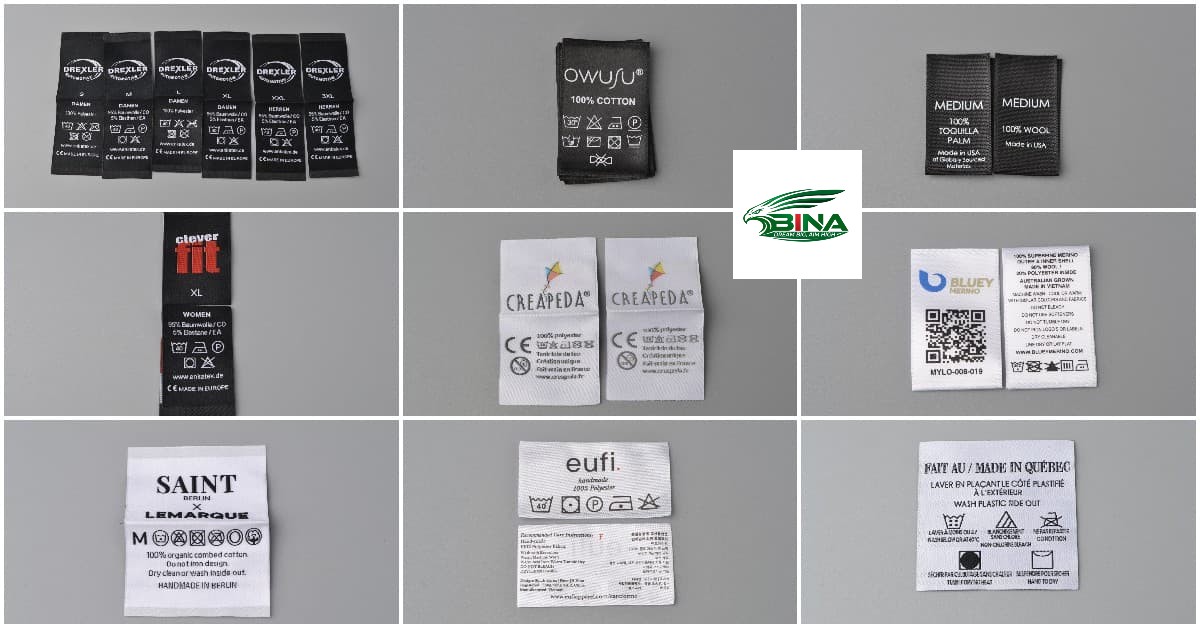 - Ngành công nghiệp may mặc: Nhãn cổ áo, nhãn kích cỡ và nhãn hướng dẫn giặt cho quần áo, đặc biệt là đồ lót và quần áo cao cấp.