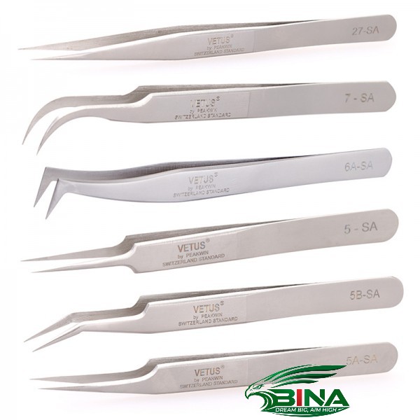 - Lựa chọn và kiểm tra: Chọn kiểu nhíp phù hợp (ví dụ: nhọn, phẳng, thẳng hoặc cong) theo yêu cầu công việc. Xác nhận rằng bề mặt nhíp sạch sẽ, không bám bụi và không bị hư hại.