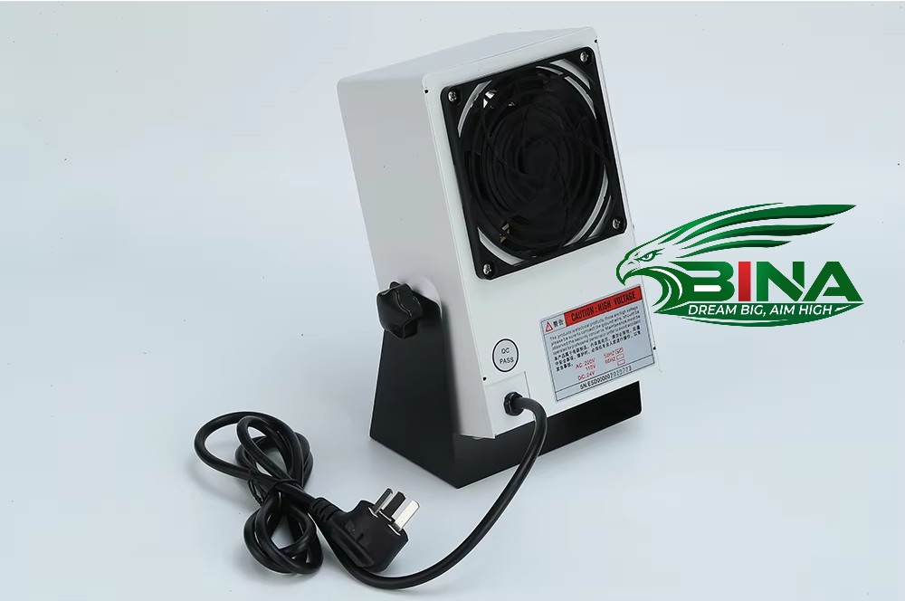 - Quạt và động cơ: Bao gồm quạt hướng trục hoặc cánh quạt ly tâm, có nhiệm vụ hút không khí xung quanh và đẩy các ion tích điện về phía vật thể cần khử tĩnh điện.