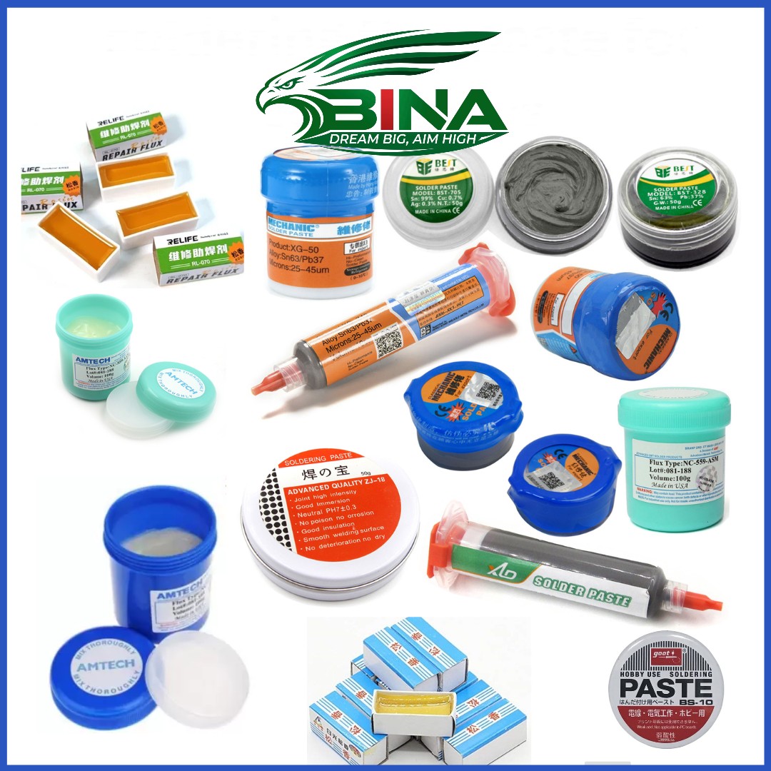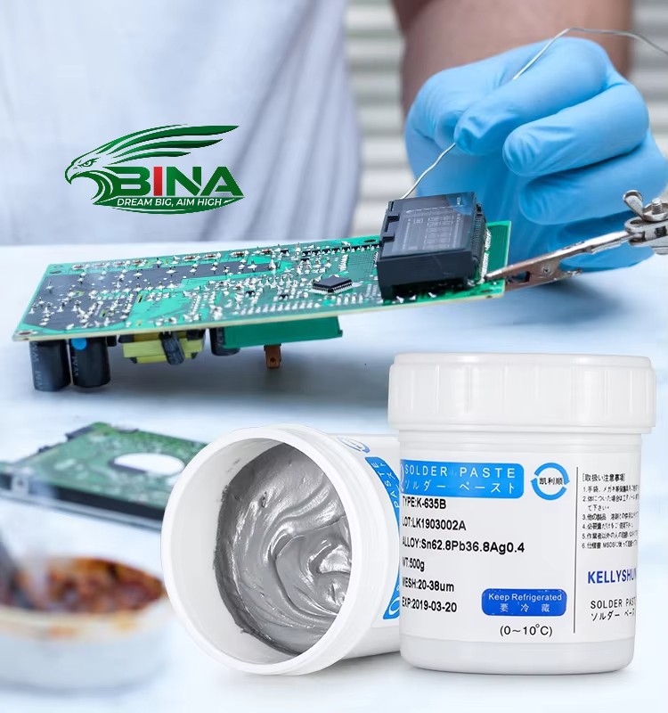 - Kem hàn: Thiếc hàn dạng bột trộn với chất trợ hàn, thường được sử dụng trong SMT (Công nghệ gắn bề mặt).